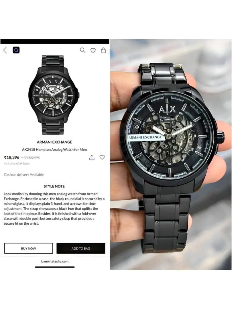 The Armani Exchange AX2463 skeleton black stainless steel men’s watch delivers an expressive blend of industrial mechanics and refined urban style.