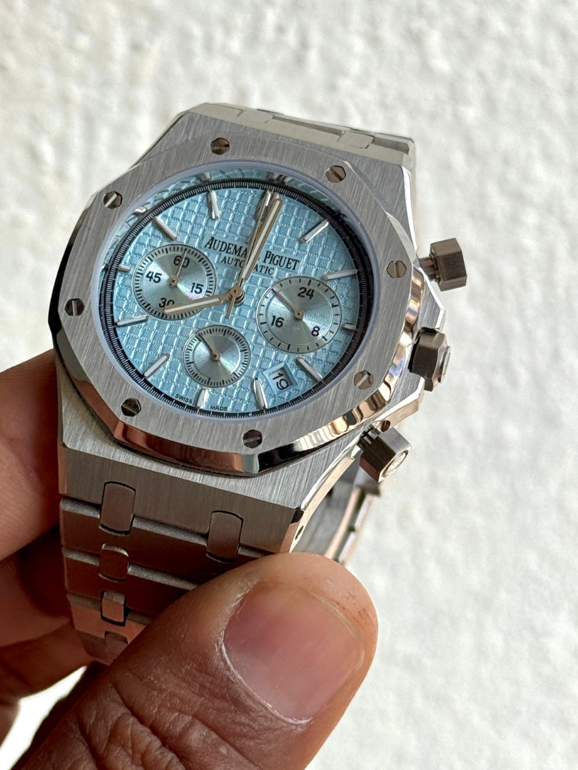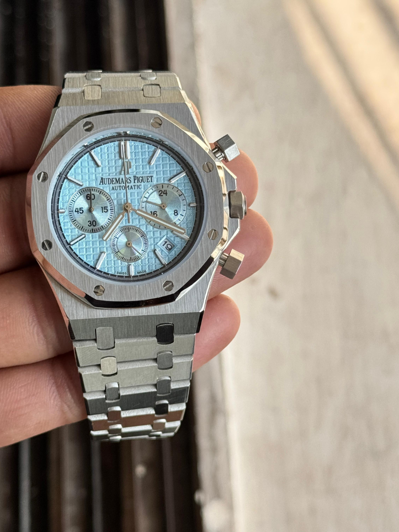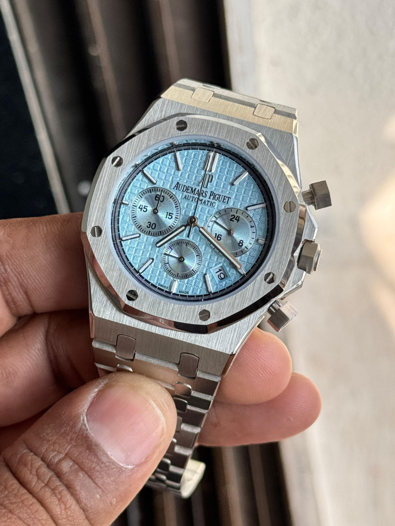 Experience the luxury and precision of the Audemars Piguet Royal Oak Blue Dial Chronograph, a symbol of innovation and design brilliance in horology.