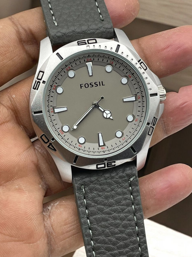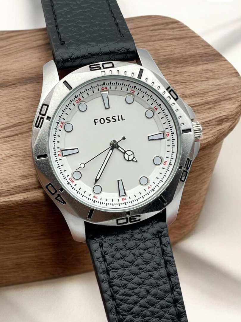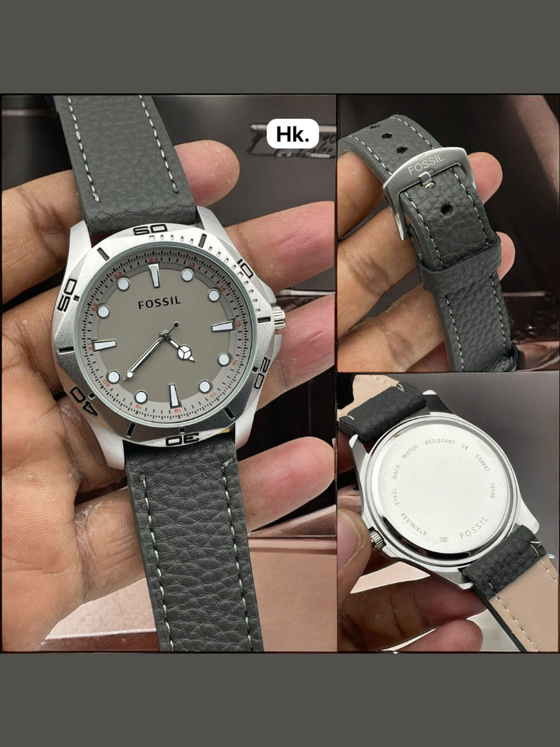 This Fossil men leather strap watch delivers the brand’s signature blend of rugged practicality and modern design.