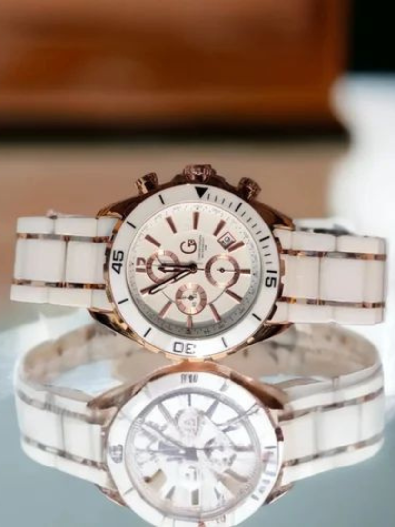 The GC Chronograph White Ceramic Rose Gold Watch is an embodiment of sport-luxury style with top-tier Swiss craftsmanship.