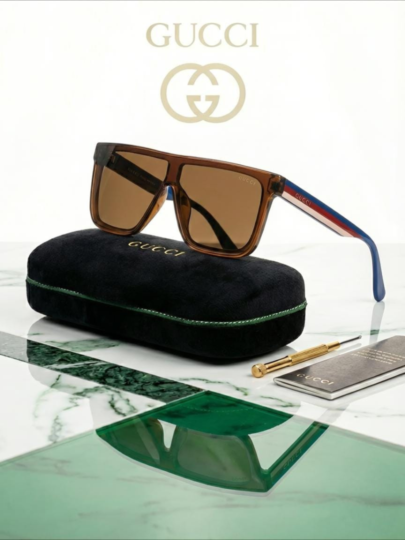 These Gucci square sunglasses present a striking fusion of bold geometry and refined Italian glamour.