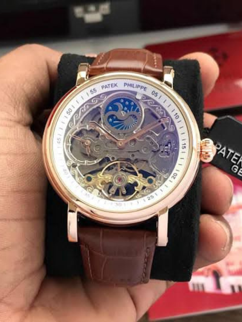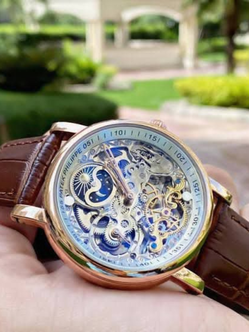 The Patek Philippe Skeleton Moonphase Luxury Watch in rose gold stands as a masterpiece that blends technical sophistication with pure artistry.