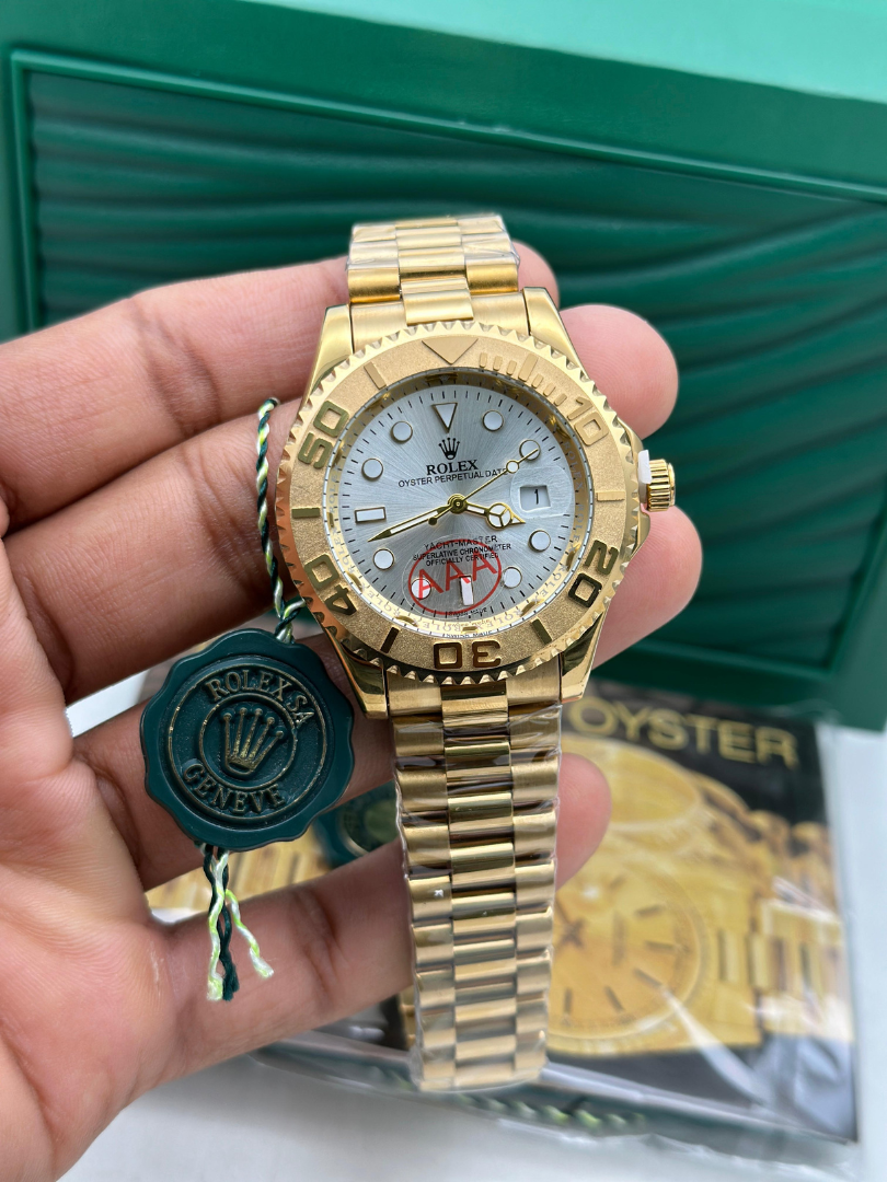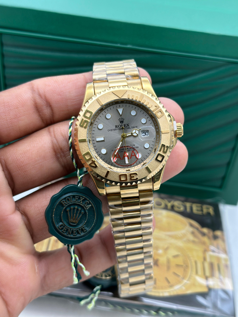 This Rolex Yacht Master gold men’s watch brings together the maritime DNA of the collection with a powerful all‑gold aesthetic, delivering a timepiece that is both functional and unmistakably luxurious.