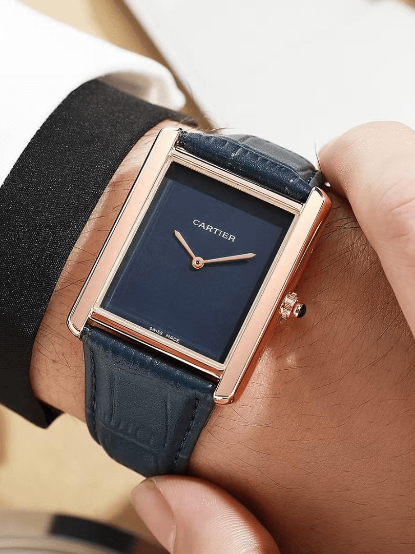 Cartier Tank Blue Dial Leather Strap Watch – COD Available