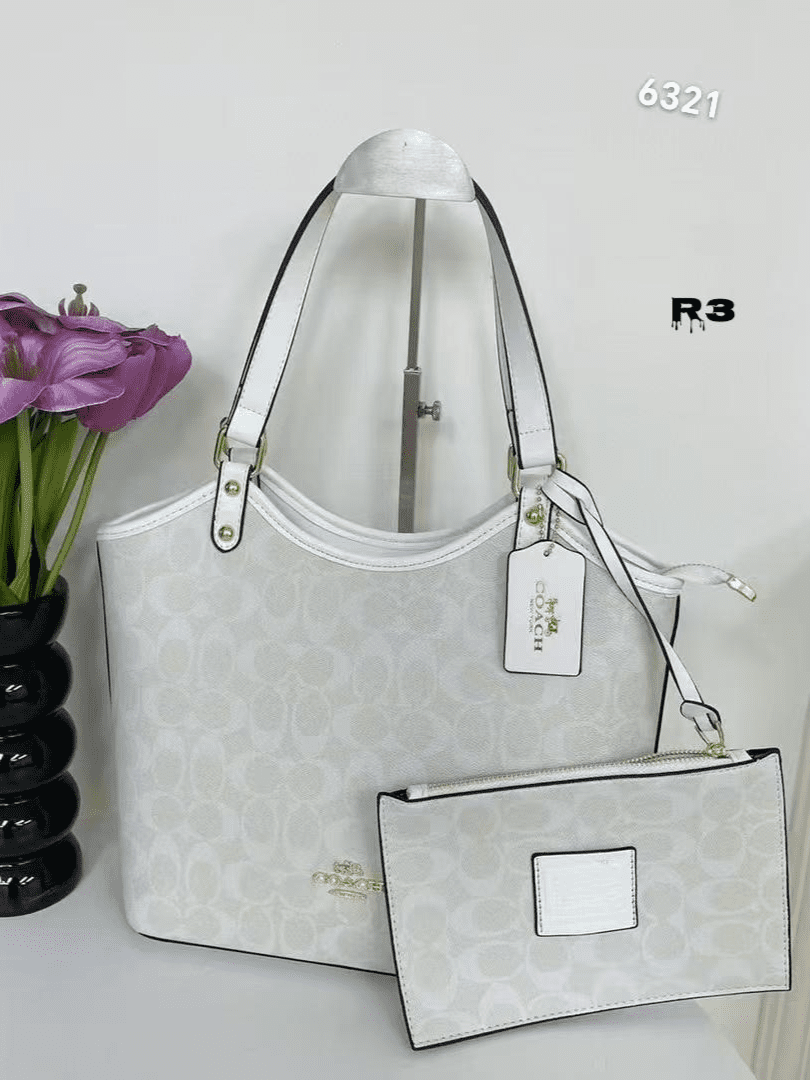 Experience timeless elegance and convenience with the Coach Signature Shoulder Tote Bag with Pouch for Women.