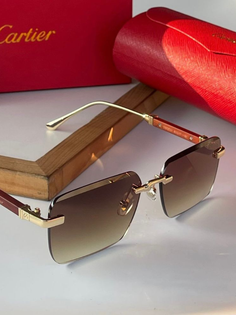 Cartier Rimless Sunglasses Gold & Wood – Luxury Style | COD Available