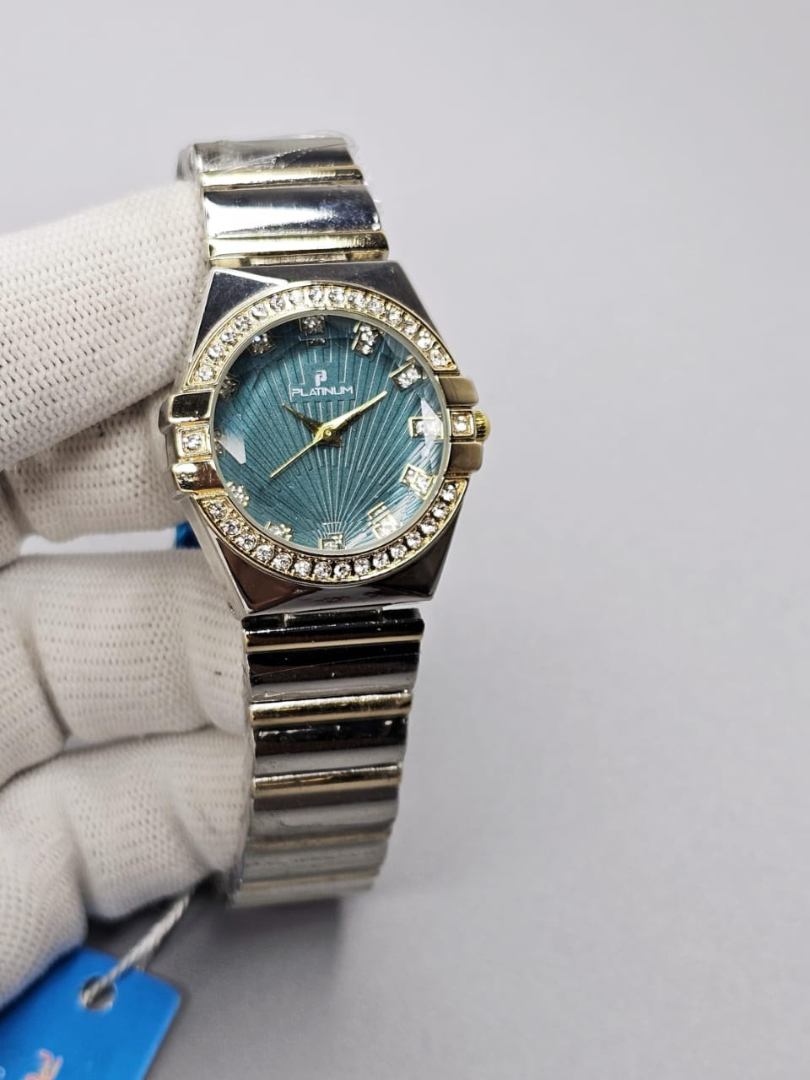 Platinum Crystal Studded Women's Watch – Stylish Design COD Available