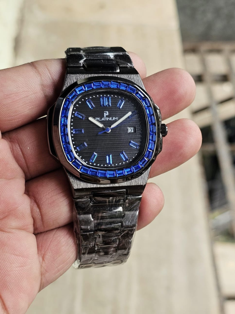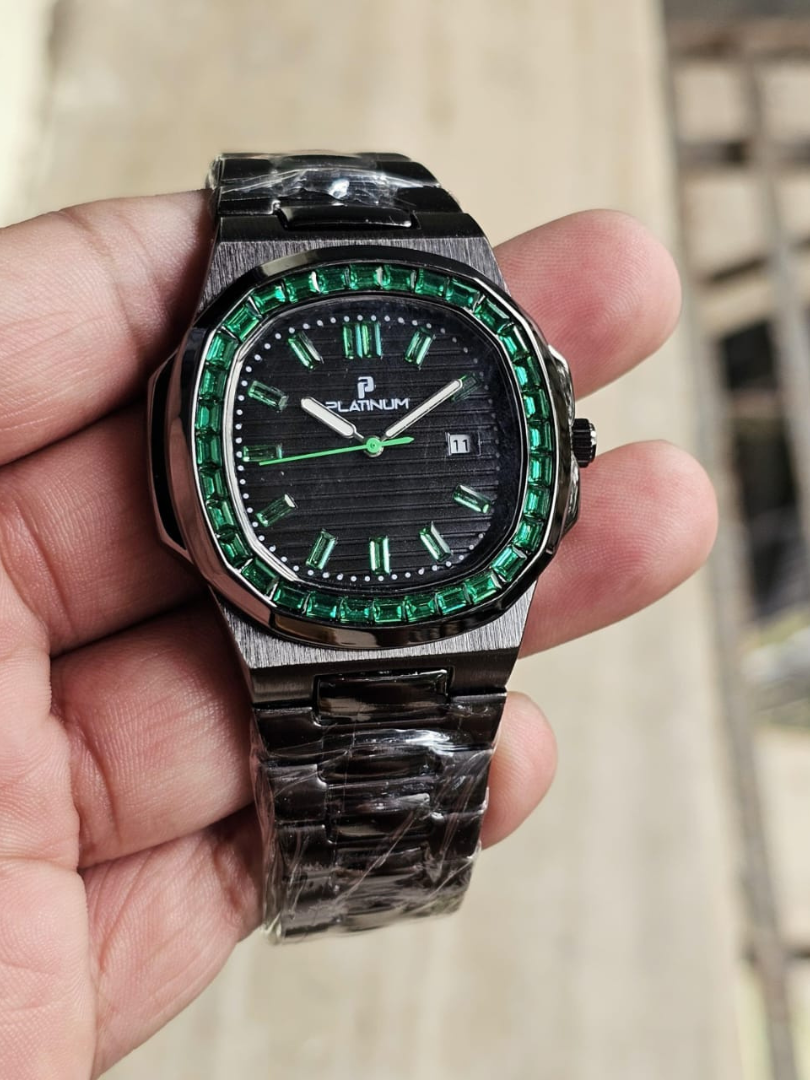 Platinum Gemstone Lined Men’s Watch – Bold Design COD Available