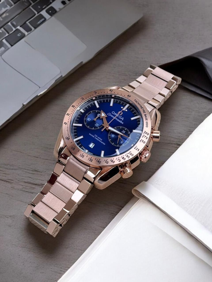 This Aqua Terra inspired timepiece blends timeless design with versatile style, featuring a deep blue dial, sleek baton hour markers, and elegant hands for clear readability.