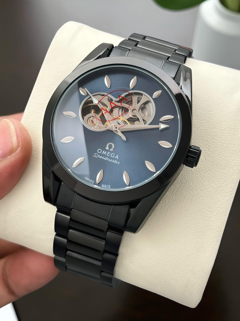 Bring refined elegance to your wrist with this Omega Seamaster Aqua Terra inspired watch. Vibrant blue dial, bold hour markers, and a polished steel bracelet—crafted for classic luxury and everyday wear.