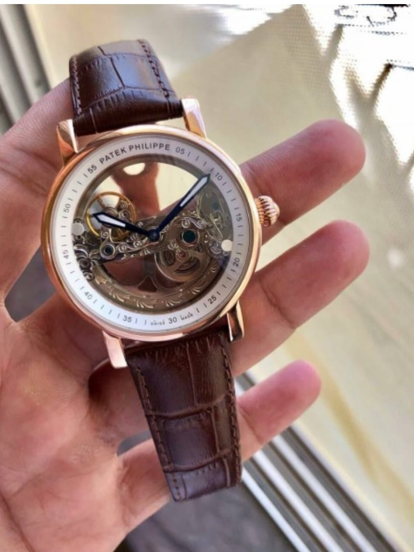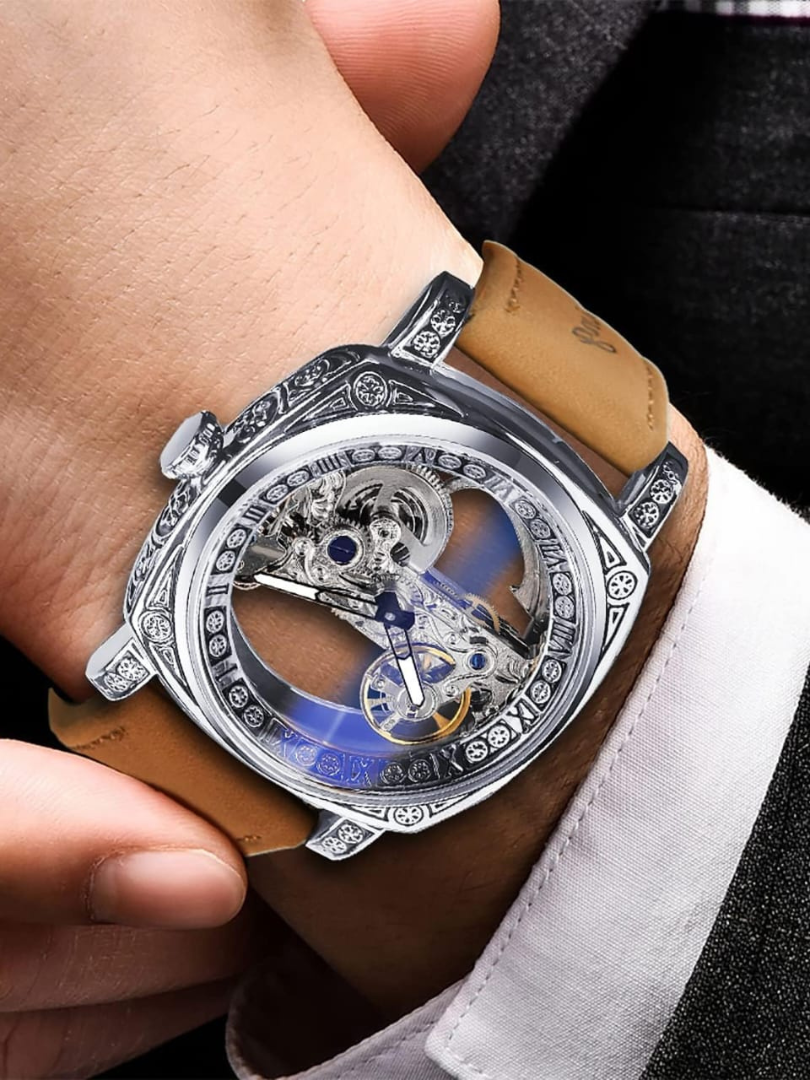 Buy Luxury Transparent Dial Automatic Watch with Genuine Leather Strap