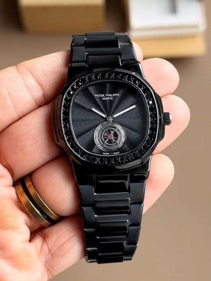 Buy Patek Philippe Black Ceramic Watch – Guilloché Dial & Jewelry Bezel