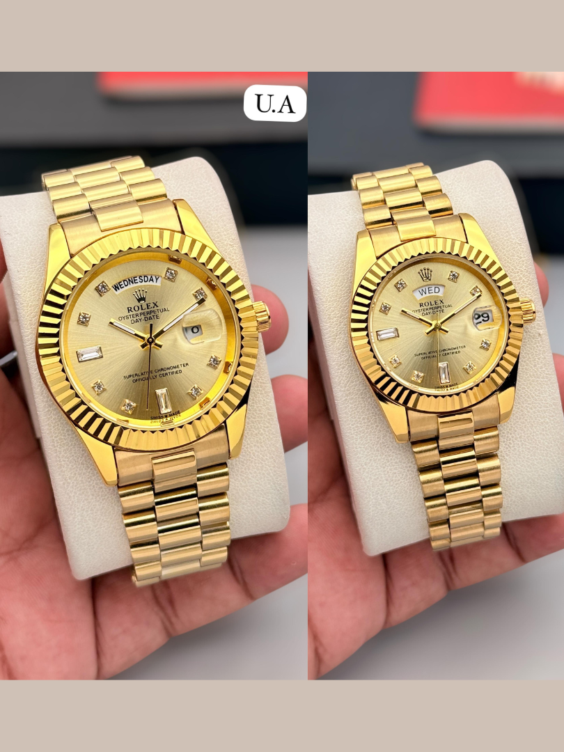 This luxury men wristwatch is crafted with inspiration from the iconic Rolex Day Date design, delivering a bold and timeless appearance.