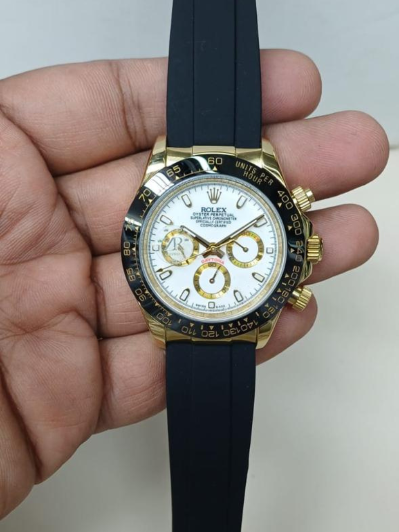 Introducing the Daytona Chronograph Men’s Watch—an ultimate blend of sporty sophistication and timeless class.