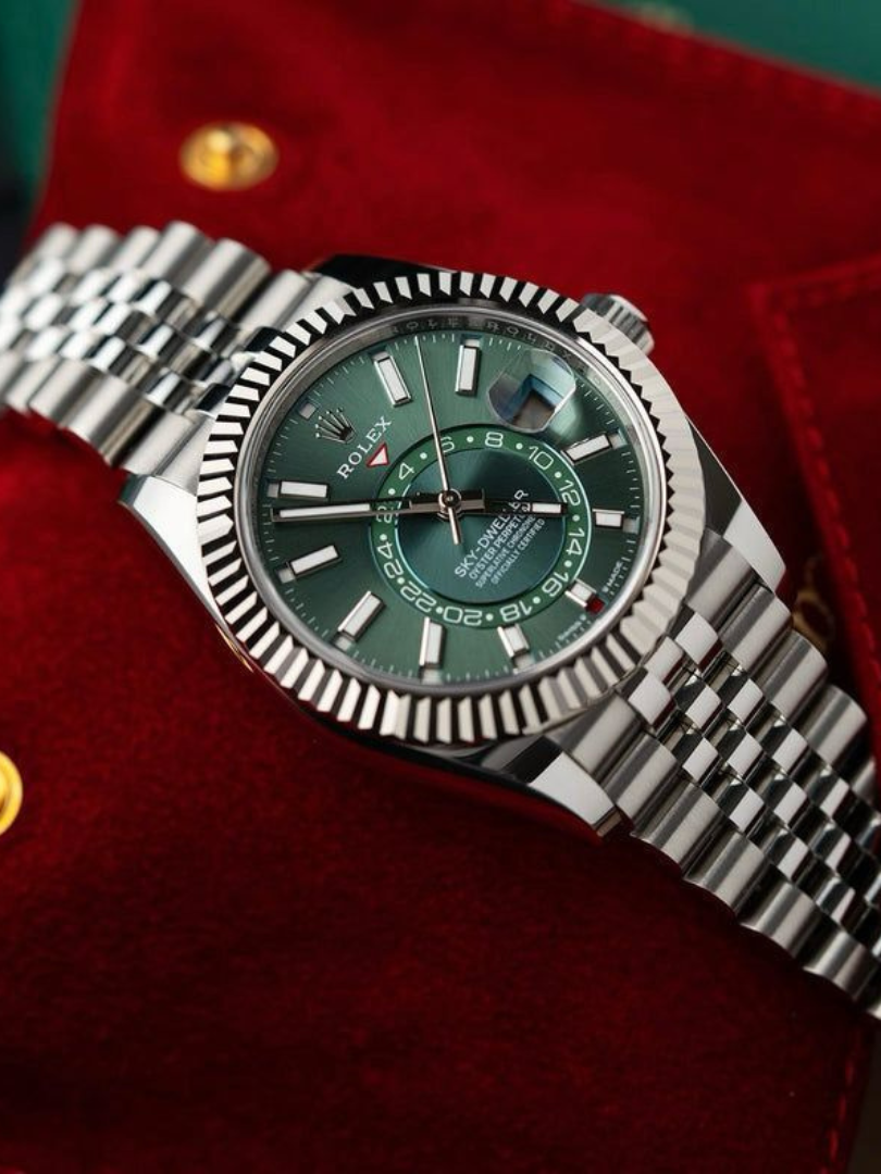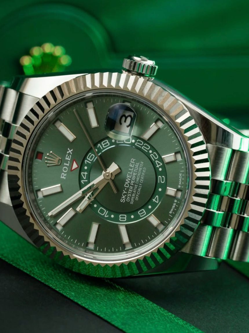 The Rolex Sky Dweller green dial luxury watch represents refined craftsmanship combined with powerful design language.